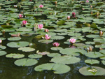 池では5月中旬からカキツバタが咲き、6月に入ると数限りないスイレンが池面に浮かびます。